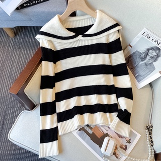 Áo Sweater Dệt Kim Tay Dài Cổ Thủy Thủ Kẻ Sọc Dễ Thương tao bao