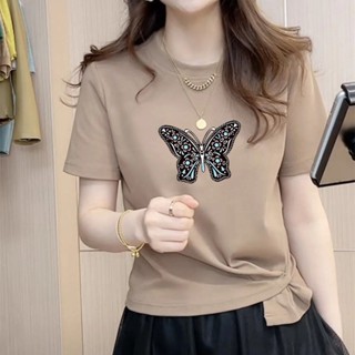 Áo Thun Ngắn Tay Cổ Chữ V Đính Kim Sa Phong Cách Hàn Quốc Thanh Lịch Dành Cho Nữ tao bao
