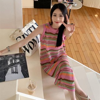 Đầm Dệt Kim Hai Dây Kẻ Sọc Nhiều Màu Xinh Xắn
