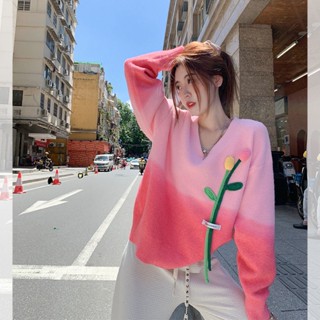 Áo Sweater Dệt Kim Cổ Chữ V Màu Gradient Thời Trang Cho Nữ tao bao