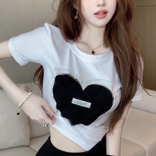 Áo Thun Tay Ngắn Màu Trắng Đính Đá Kim Cương Hình Trái Tim Cho Nữ tao bao