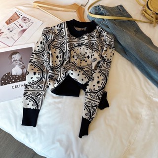 Xiaoxiang Áo Dệt Kim Cổ Tròn Dáng Ôm Thêu Họa Tiết Màu Tương Phản Phong Cách Phương Tây Dành Cho Nữ tao bao