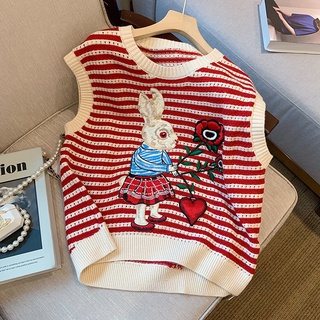 Áo Dệt Kim Không Tay Họa Tiết Kẻ Sọc Màu Sắc Tương Phản Thời Trang Dành Cho Nữ tao bao
