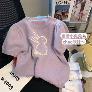 Áo Sweater Dáng Ngắn Họa Tiết Thỏ Màu Tím Thiết Kế Mới Thời Trang Theo Phong Cách tao bao