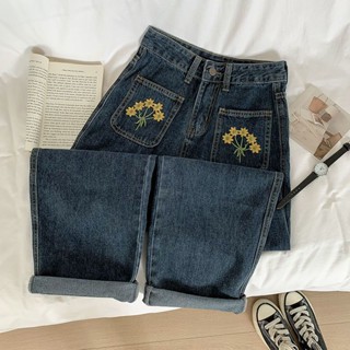 Quần Jeans Ống Rộng Thêu Hoa Phong Cách Retro Cho Nữ tao bao