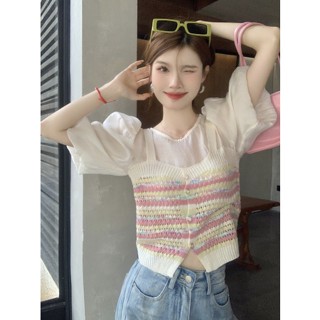 Áo Sơ Mi Tay Phồng Giả Hai Lớp Họa Tiết Kẻ Sọc Thời Trang