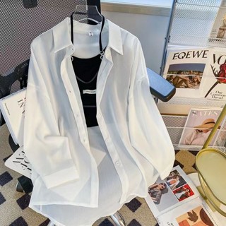 Áo Sơ Mi Trắng Tay Dài Dáng Rộng Thiết Kế Mỏng Chống Nắng Phong Cách Thời Trang Hàn Quốc Cho Nữ