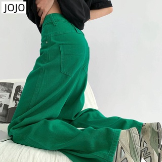 Quần Jean Ống Rộng Dáng Suông Phong Cách Đường Phố Âu Mỹ Màu Xanh Lá Mới Cho Nữ
