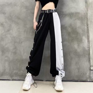 Quần Thể Thao Ống Rộng Lưng Cao Kẻ Sọc Màu Sắc Tương Phản Phong Cách Hàn Quốc Cho Nữ
