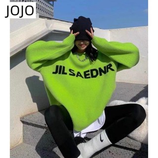 Áo Sweater Dệt Kim Dày Dáng Rộng In Chữ Màu Xanh Bơ Thời Trang Mùa Đông Cho Nữ
