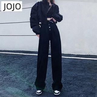 Quần Jean Nữ Lưng Cao Ống Rộng Màu Đen Cá Tính