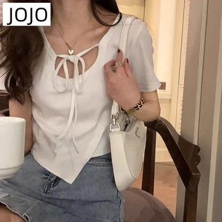 Áo Thun Ngắn Tay Thiết Kế Không Đồng Đều Cột Dây Phong Cách Pháp Thời Trang Mới Cho Nữ