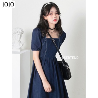 Đầm Denim Cổ Vuông Tay Phồng Thời Trang Mùa Hè Pháp Cổ Điển Dành Cho Nữ