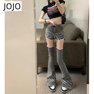 Quần Jean Nữ Ống Loe Xẻ Tà Lưng Cao Co Giãn Màu Gradient Phong Cách Mới