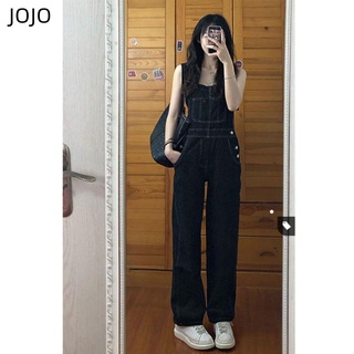 Quần Yếm Dài Ống Rộng Màu Đen Phong Cách Retro Cho Nữ