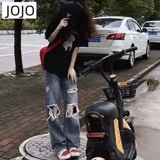 Quần Jean Rách Ống Rộng Phong Cách Đường Phố Mỹ Thời Trang Mùa Hè Hàng Mới Dành Cho Bạn Nữ