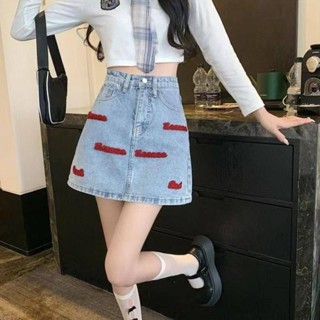 Chân Váy Denim Chữ a Lưng Cao Thêu Chữ Phong Cách Hàn Quốc Thời Trang Mùa Hè Cho Nữ
