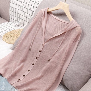 Áo Khoác Cardigan Dệt Kim Mỏng Có Mũ Trùm Phối Nút Thời Trang Mới 2022 Cho Nữ