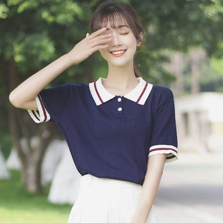 Áo Thun polo Dệt Kim Tay Ngắn Dáng Rộng Thời Trang Mùa Hè Phong Cách Hàn Quốc Cho Nữ