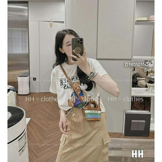 Set áo thun hình gấu tay con kèm chân váy dáng dài