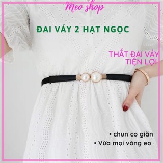 ĐAI VÁY HẠT NGỌC chun Meo shop ĐV003 Nịt váy chun eo cài trước 2 hạt ngọc - thắt lưng váy phối da nữ màu đen