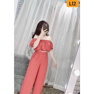(Sale FreeShip) Sét bộ nữ ống rộng có túi,áo trễ vai bo chun cực xinh,bộ nữ đi chơi siêu đẹp,có nhìu màu hottren