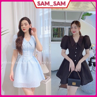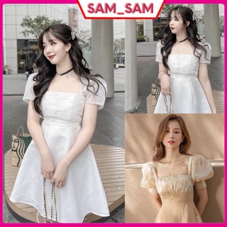 Váy dáng dài tay bồng - Váy cổ vuông xếp ly bèo ngực dáng Babydoll nhẹ nhàng dễ thương để dự tiệc sam_sam_shop_1011