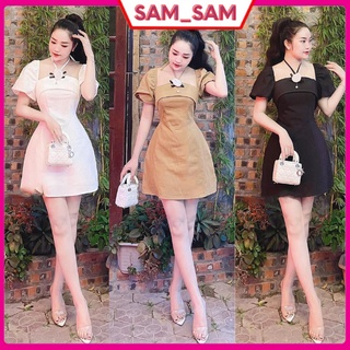 Váy Cổ Yếm - Váy cài nơ đá sang chảnh vô cùng đẹp và tôn dáng, chất lụa Tacta Quảng Châu loại 1 óng mềm cực xinh