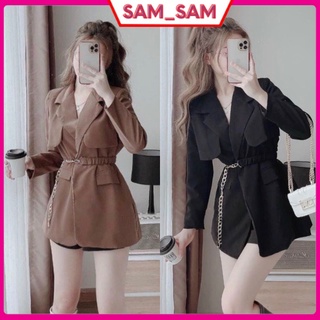 Áo vest nữ kèm đai xích hotgirl , blazer hàn quốc thanh lịch,siêu hack chiều cao ,hàng 2 lớp xịn xò