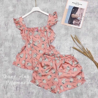 Bộ Ngủ 2 Dây, Set Áo Cánh Tiên Quần Đùi Mặc Nhà, Chất Lụa Satin Mềm Mại, Không Nhăn.