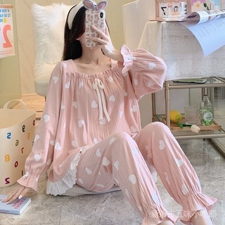 Bộ Đồ Ngủ Tay Dài Chất Cotton Phong Cách Công Chúa Dễ Thương Thời Trang Thu Đông Cho Nữ