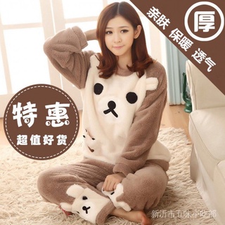 Bộ Đồ Ngủ Lông Cừu San Hô Dày Dặn Ấm Áp Dễ Thương Cho Nữ