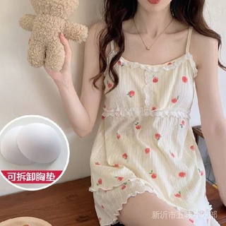 Đầm Ngủ Hai Dây Có Mút Đệm Ngực Dễ Thương Phong Cách Hàn Quốc Thời Trang Mùa Hè Cho Nữ