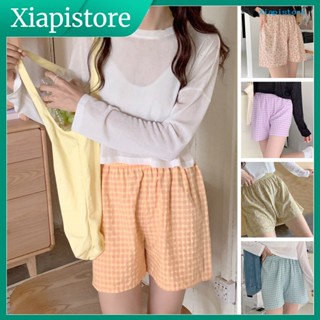 [XI] Quần Short Mặc Nhà Dáng Rộng Lưng Cao Co Giãn In Họa Tiết Kẻ Sọc Có Túi Dành Cho Nữ