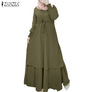 Đầm Dài Hai Lớp Eo Thun ZANZEA Cho Phụ Nữ Hồi Giáo