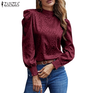 Áo kiểu Zanzea tay phồng xếp ly dáng rộng in họa tiết da báo thời trang cho nữ