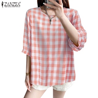 Zanzea Áo Kiểu Tay Lỡ 3 / 4 Họa Tiết Ca Rô Phong Cách Hàn Quốc Dành Cho Nữ