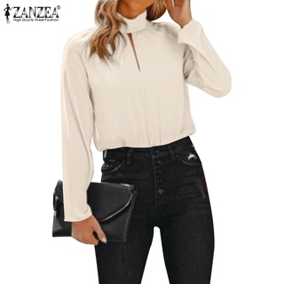 Áo kiểu ZANZEA tay phồng cổ đứng màu trơn thời trang cho nữ