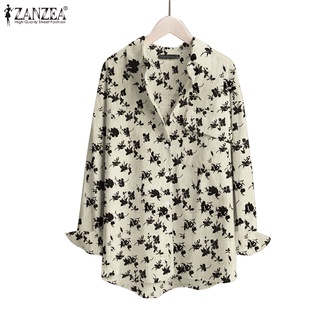 Zanzea Áo Sơ Mi Cổ Bẻ Dài Tay Có Túi In Họa Tiết Thời Trang Cho Nữ