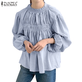 Áo sơ mi ZANZEA tay dài cổ cao xếp ly cài nút thời trang dành cho nữ