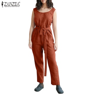 Áo liền quần ZANZEA sát nách có dây thắt lưng và túi phong cách Châu Âu thời trang cho nữ