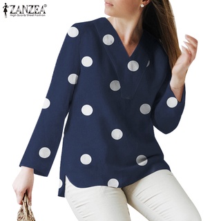 Zanzea Áo Nữ Tay Dài Cổ Chữ V Họa Tiết Chấm Bi Phong Cách Châu Âu