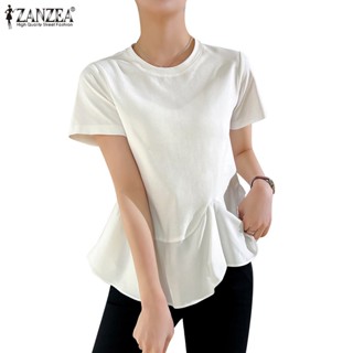 Áo thun nữ ZANZEA ngắn tay cổ tròn vạt lệch thời trang
