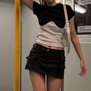Kliou Áo Thun Croptop Tay Ngắn Cổ Tròn Màu Sắc Tương Phản Thời Trang Mùa Hè Cho Nữ