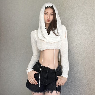 Kliou 2023 Mới Áo Hoodie Croptop Dệt Kim Tay Dài Phong Cách Thời Trang Đường Phố Mới 2023
