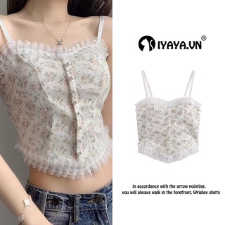 Áo 2 dây có mút ngực áo hai dây croptop Ôm Dáng Phối Ren Họa Tiết Hoa Quyến Rũ Thời Trang Kiểu Pháp Cho Nữ