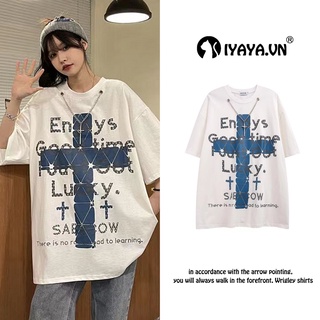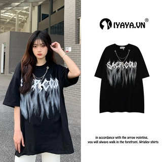Áo Thun Tay Ngắn Dáng Rộng In Chữ Phối Dây Xích Phong Cách Đường Phố Mỹ Cổ Điển Thời Trang Cho Nữ
