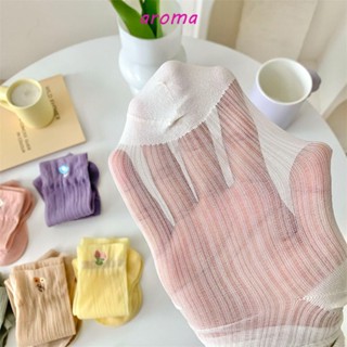 AROMA Vớ Lưới Mỏng Co Giãn Mềm Mại Màu Trơn Thêu Hoa Thời Trang Mùa Hè Cho Nữ