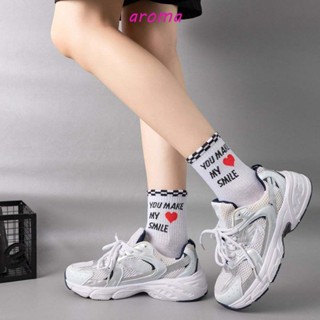 AROMA Vớ Ống Trung Bình Mềm Mại Thoải Mái Giữ Ấm Mùa Đông In Chữ Phong Cách Harajuku Cổ Điển
