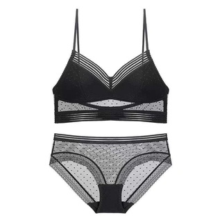 Bộ Đồ Lót Ren Mỏng Màu Trơn Mềm Mại Thoáng Khí Điều Chỉnh Được Kèm Quần Lót Quyến Rũ Cho Nữ